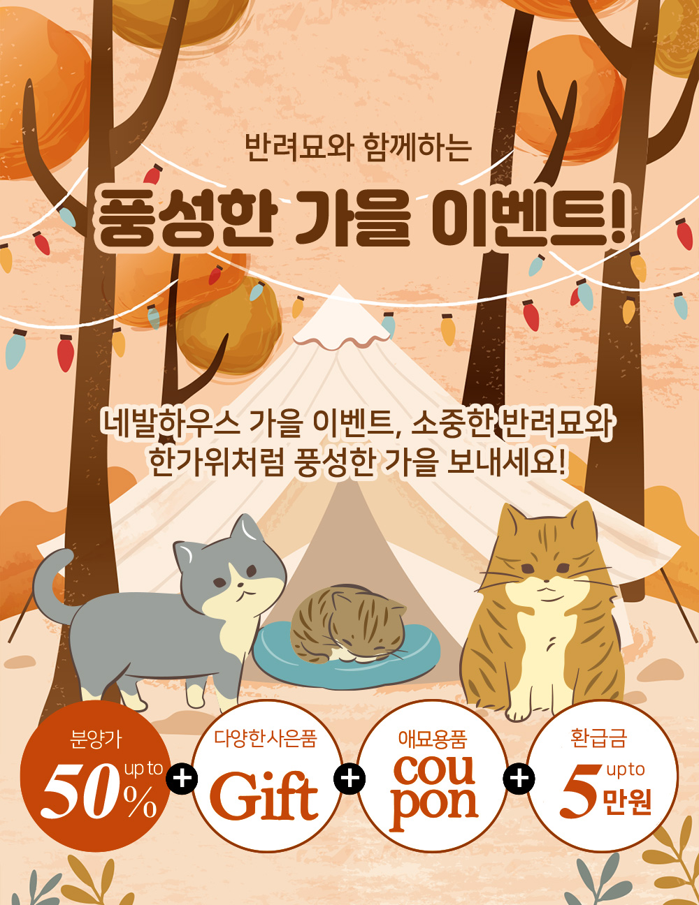 ¹Ý·Á¹¦¿Í ÇÔ²²Çϴ dz¼ºÇÑ °¡À»À̺¥Æ® ÃÖ´ë 50%ÇÒÀÎ+5¸¸¿ø ȯ±Þ±Ý